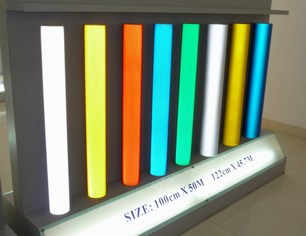 产品描述:广告级反光膜是将高折射率的玻璃微珠植入特定树脂中,并采用微米级精度工艺制作,对入射光线进行回归反射的面膜(PET或Acrylic)的反光材料。